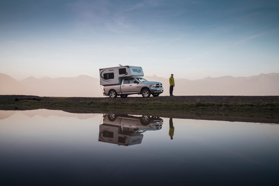 Lake Reflections – Discover tranquility with a camper van by a refl #17237088